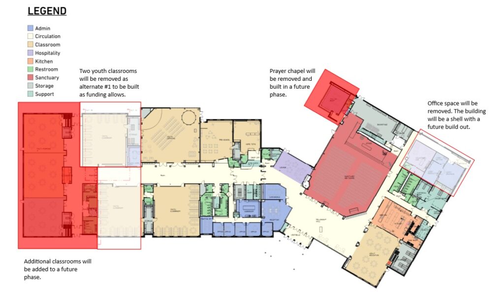 Phase Two includes: - A larger sanctuary space that can seat many more people in worship.